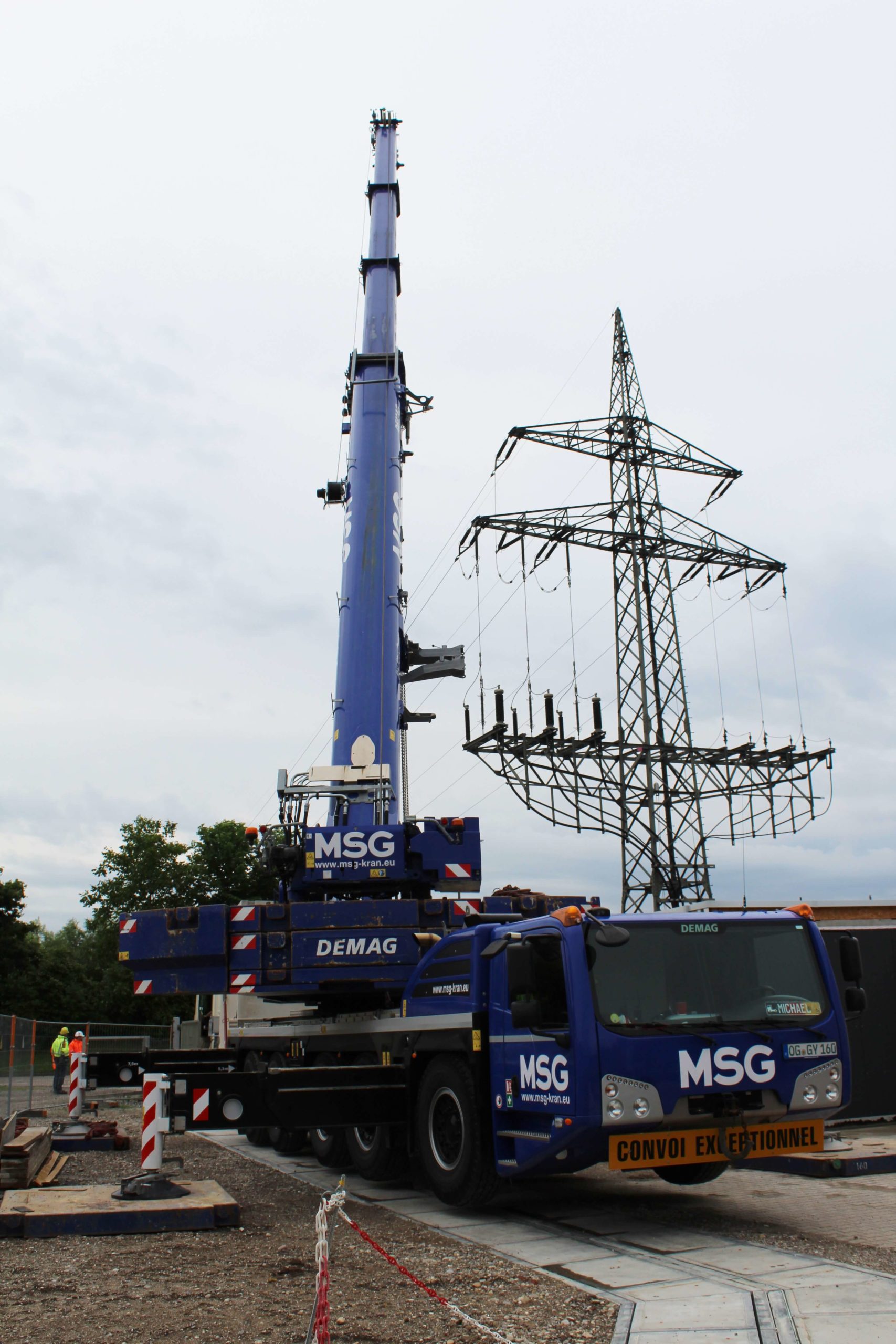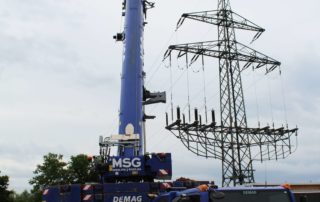 Damit sollen die Kapazitäten der bereits bestehenden Trafostationen erweitert werden. Hierzu hat unser All-Terrain Kran ganze Arbeit geleistet und die Betonstationen nacheinander exakt positioniert.