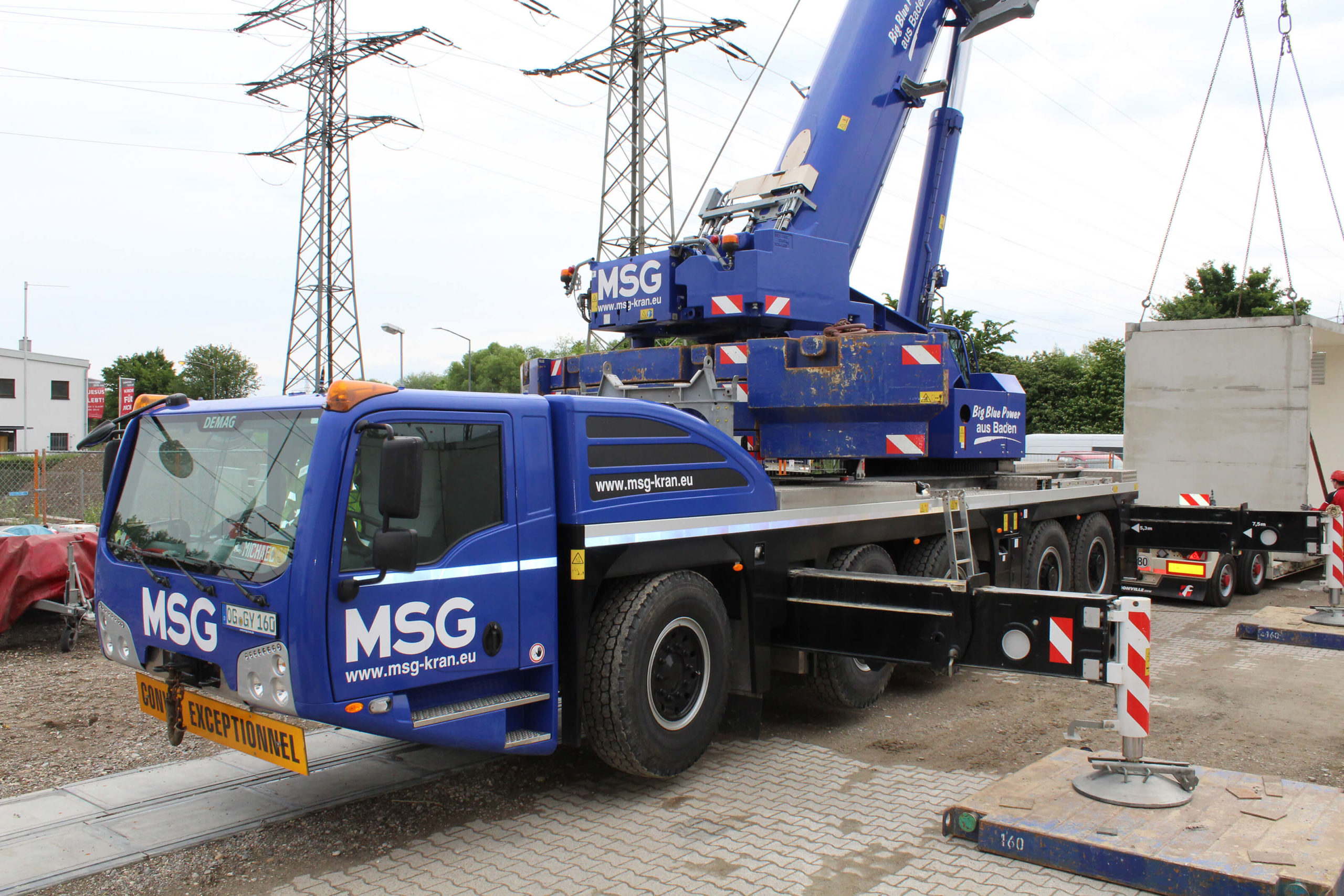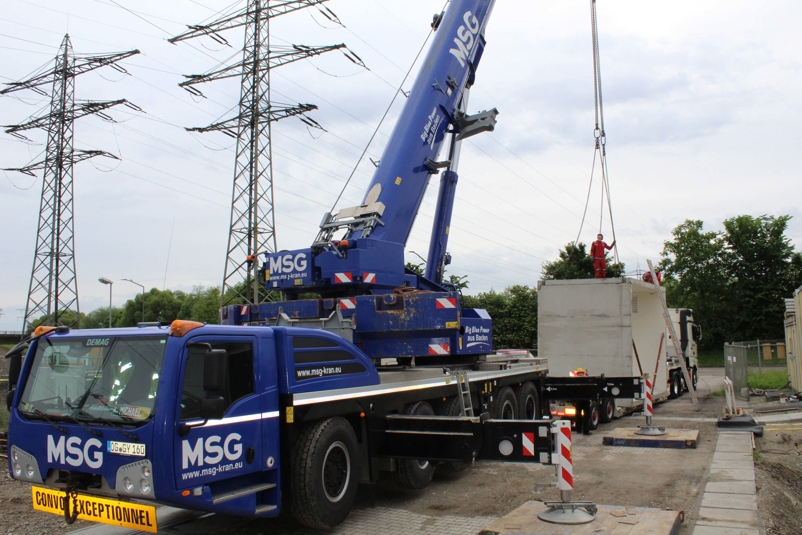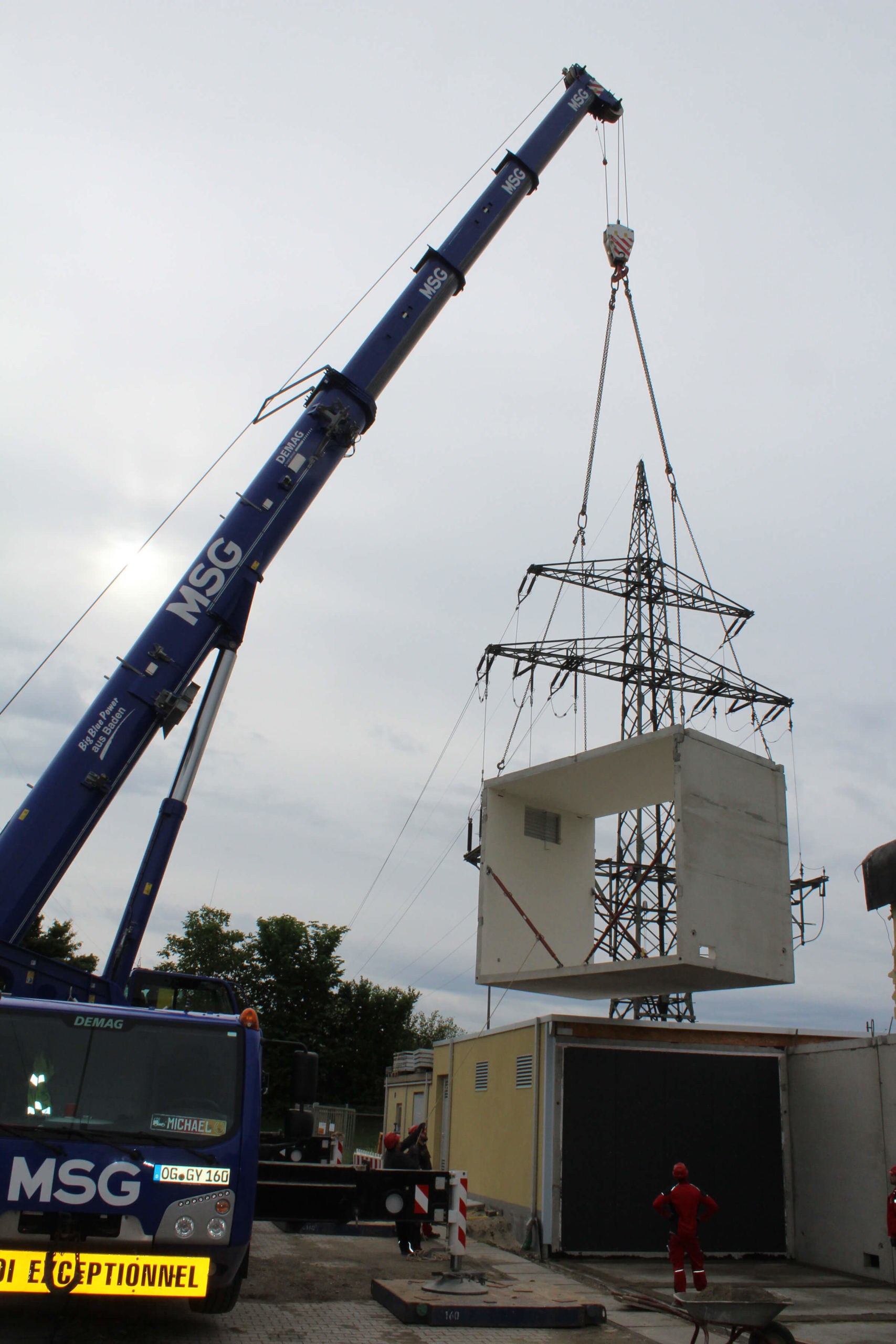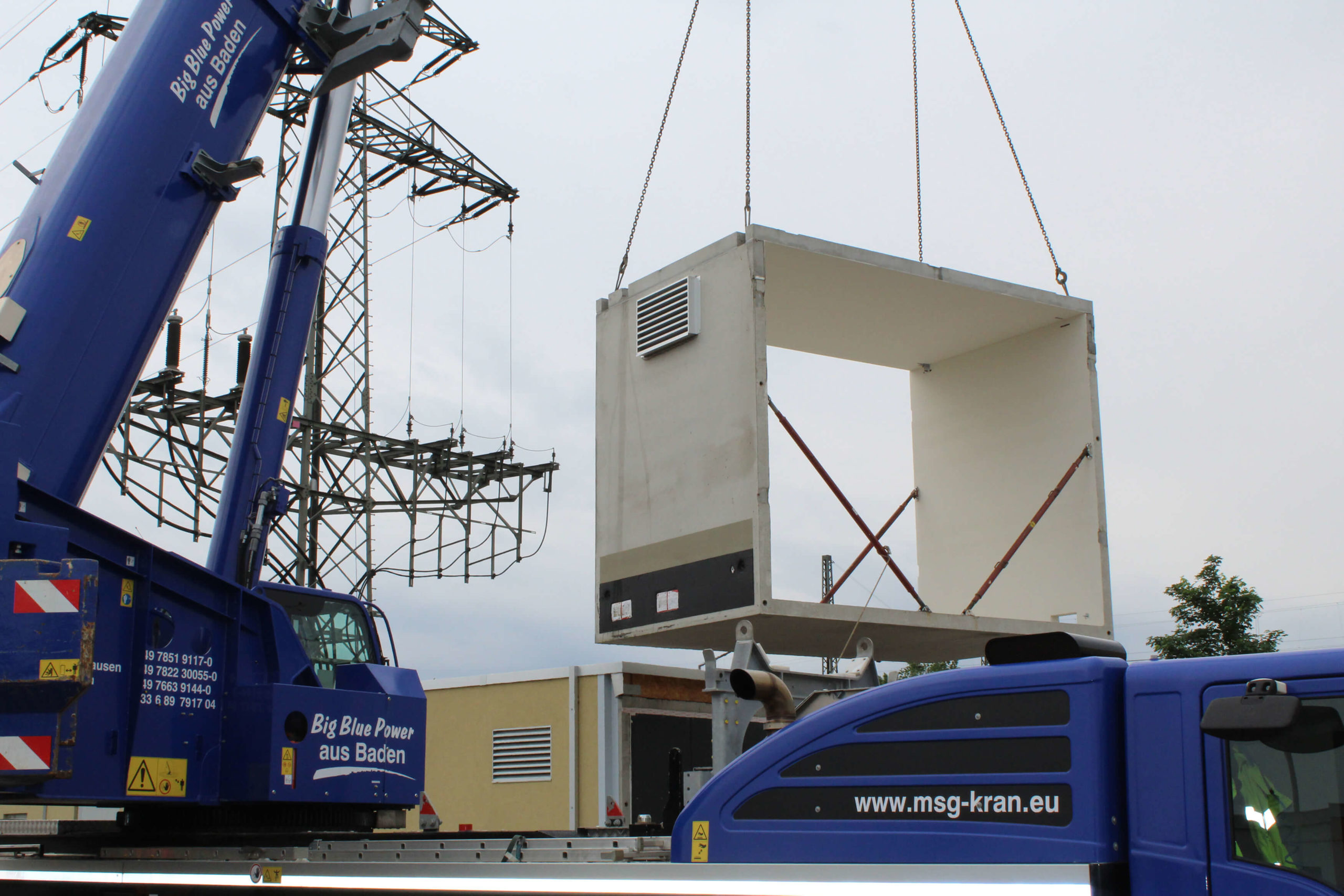 Wir haben den Auftrag erhalten, mehrere Betonstationen mit einem jeweiligen Eigengewicht von 23to. an die bereits bestehenden Trafostationen zu setzen.