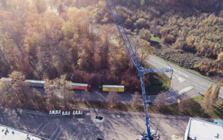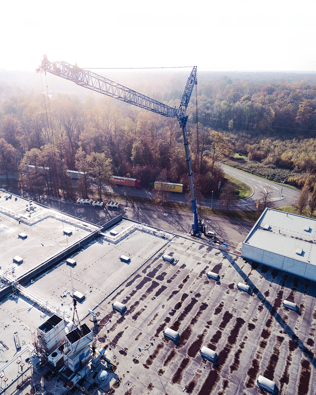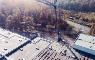 Travaux de levage au-dessus de la toiture d’un centre commercial
