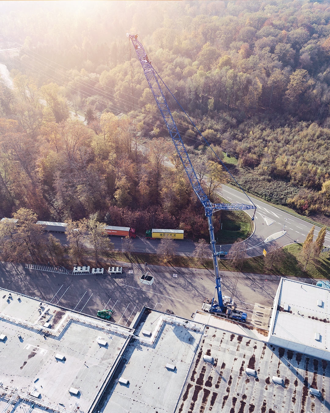 Notre GMK6400 équipée de ses 43M de volée a sû relever ce défi à la grande satisfaction de notre client.