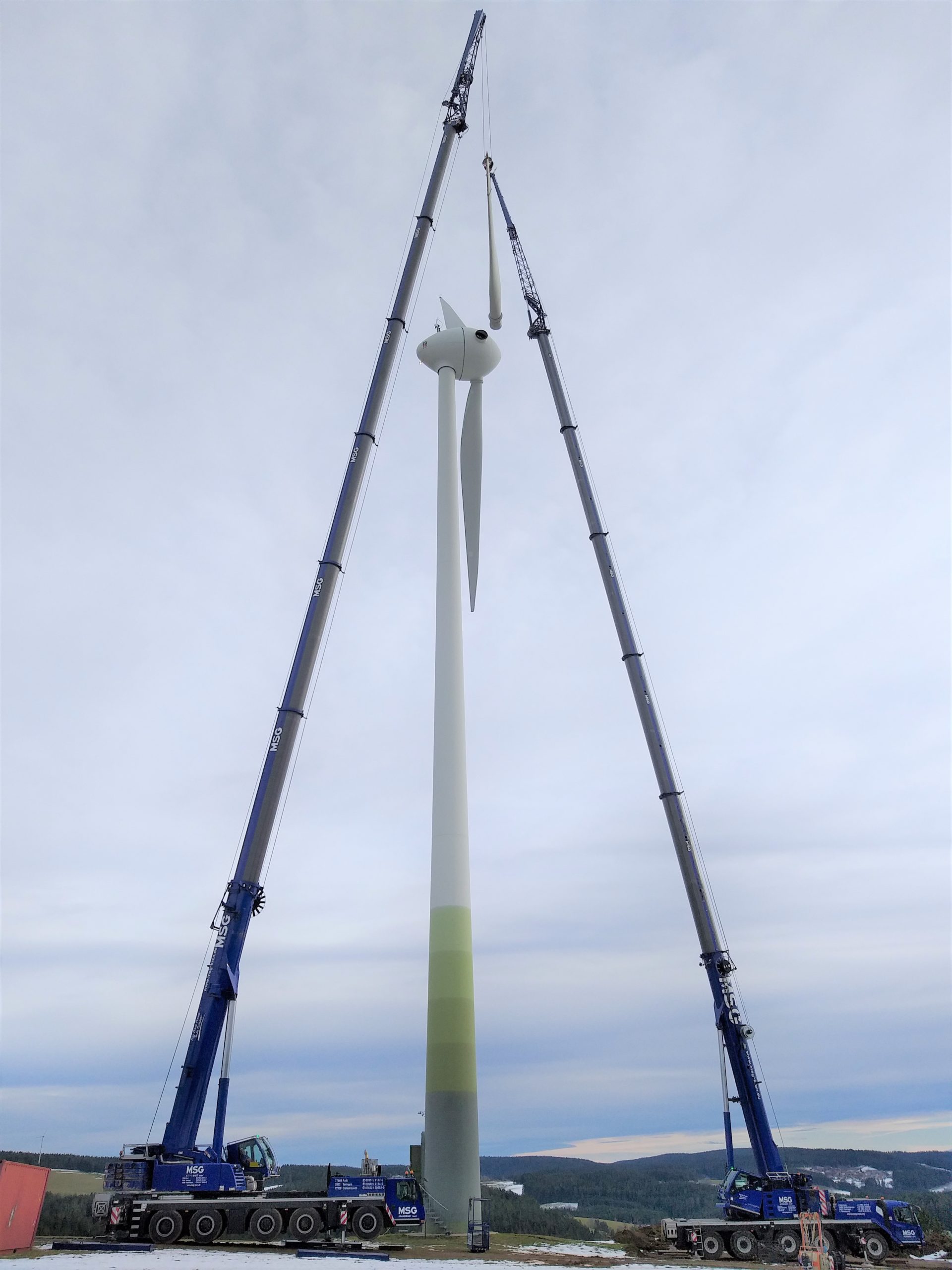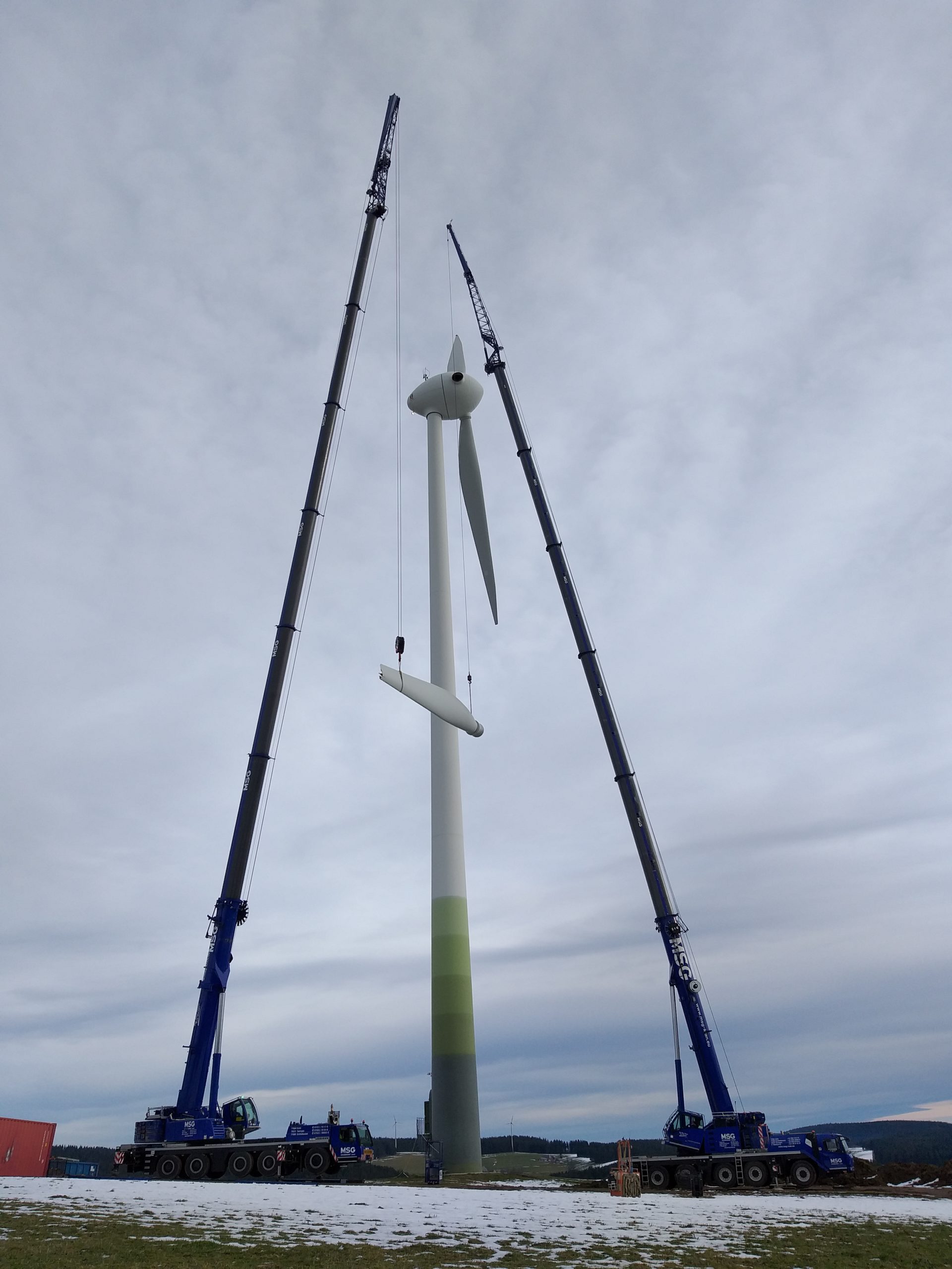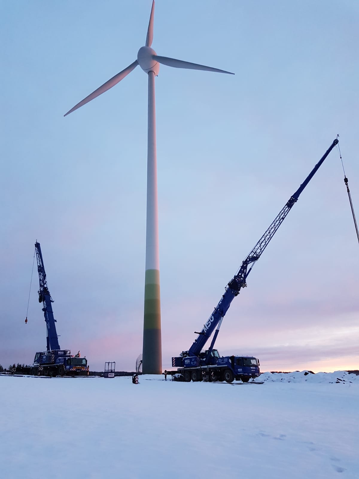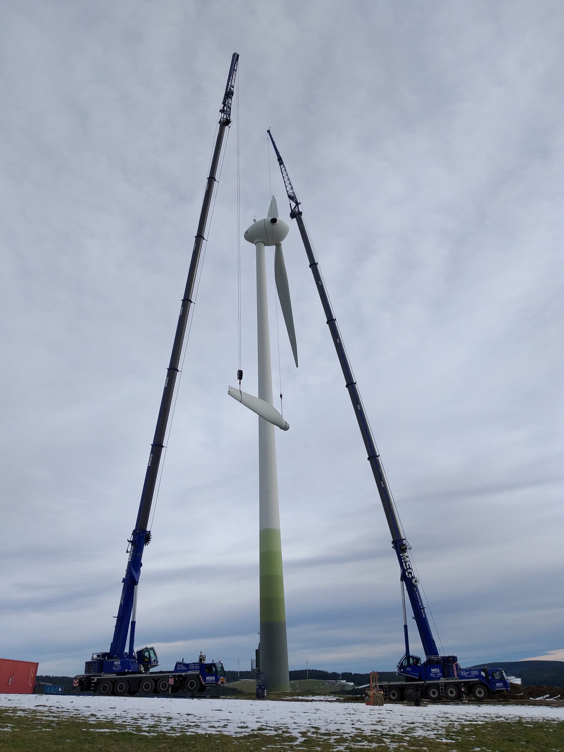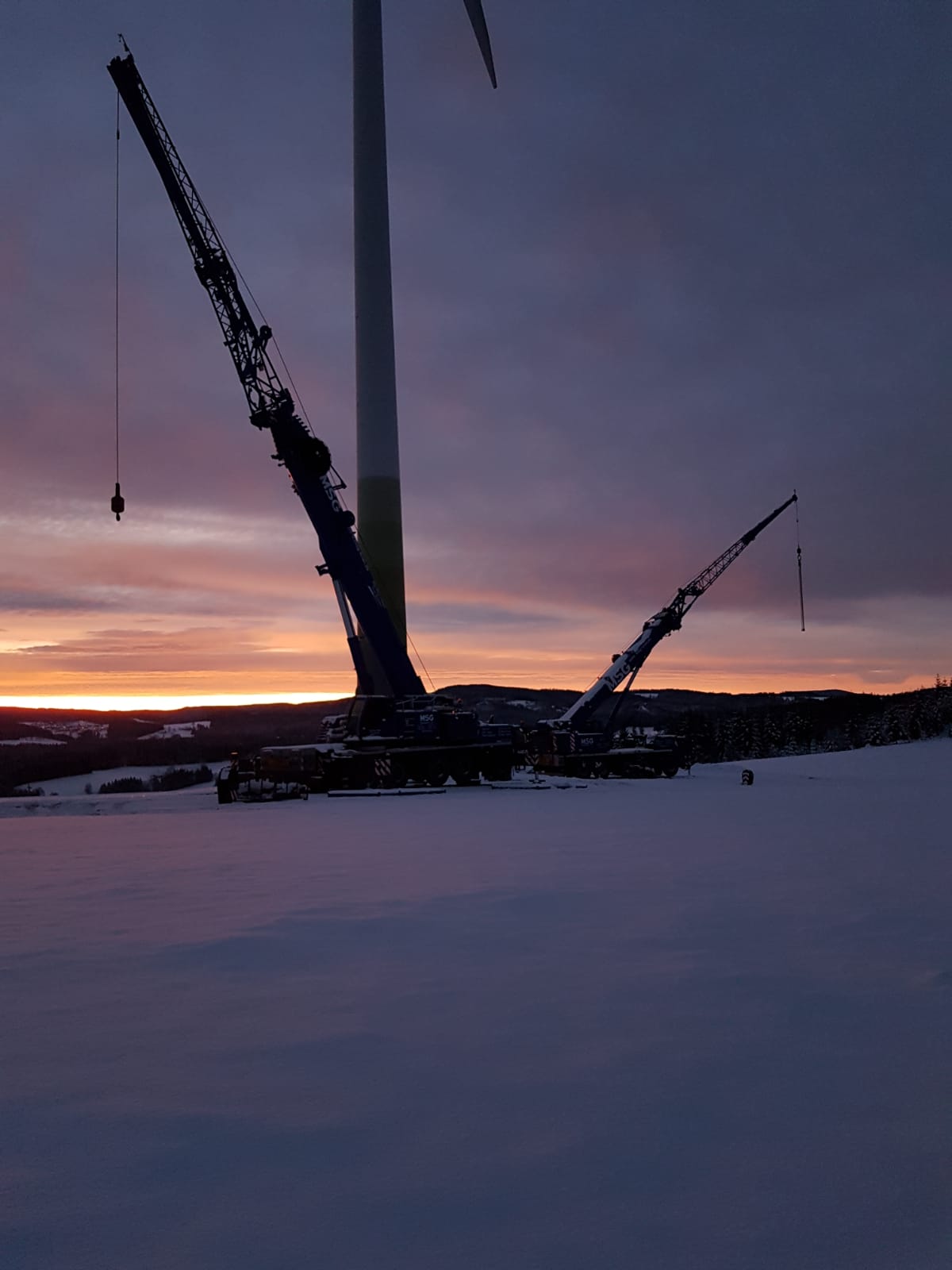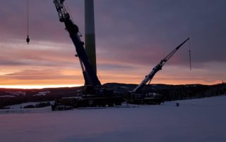 Montage d’éoliennes Montage d’une éolienne Chantier de nos grues Manitowoc Crane GMK 5150-L et Liebherr LTM 1200-5.1 dans un magnifique paysage d’hiver. Remplacement de pales d’éoliennes dans un contexte hivernal magnifié par un lever de soleil sur un paysage forestier. BIG BLUE POWER – Winter-Wonderland Christoph2020-05-29T10:14:12+02:00März 25th, 2020| Share This Story, Choose Your Platform! FacebookTwitterRedditLinkedInWhatsAppTumblrPinterestVkE-Mail